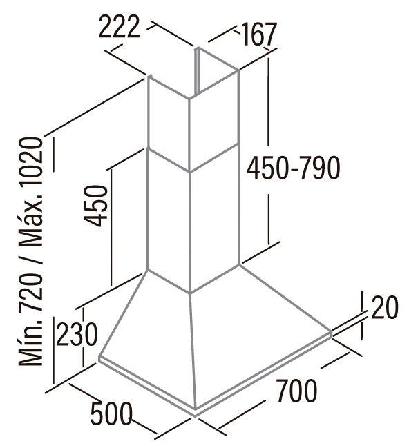 Okap kominowy CATA Omega 700 X Srebrny - rysunek techniczny