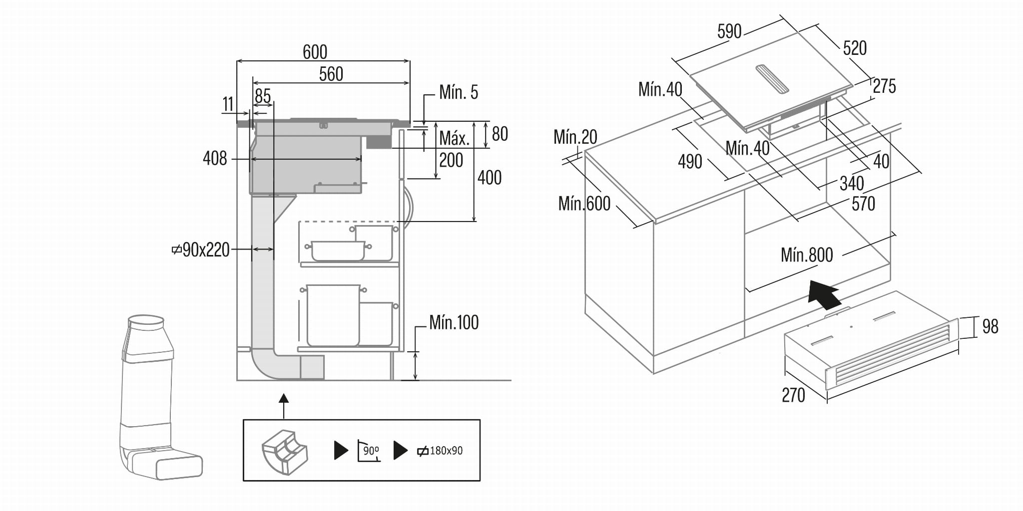 Zestaw do recyrkulacji + zestaw podłączeniowy przeznaczony do płyty ze zintegrowanym okapem CATA AS 600, dzięki któremu okap będzie mógł działać w zamkniętym obiegu jako pochłaniacz.