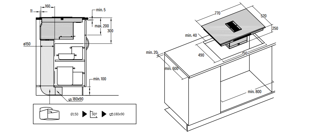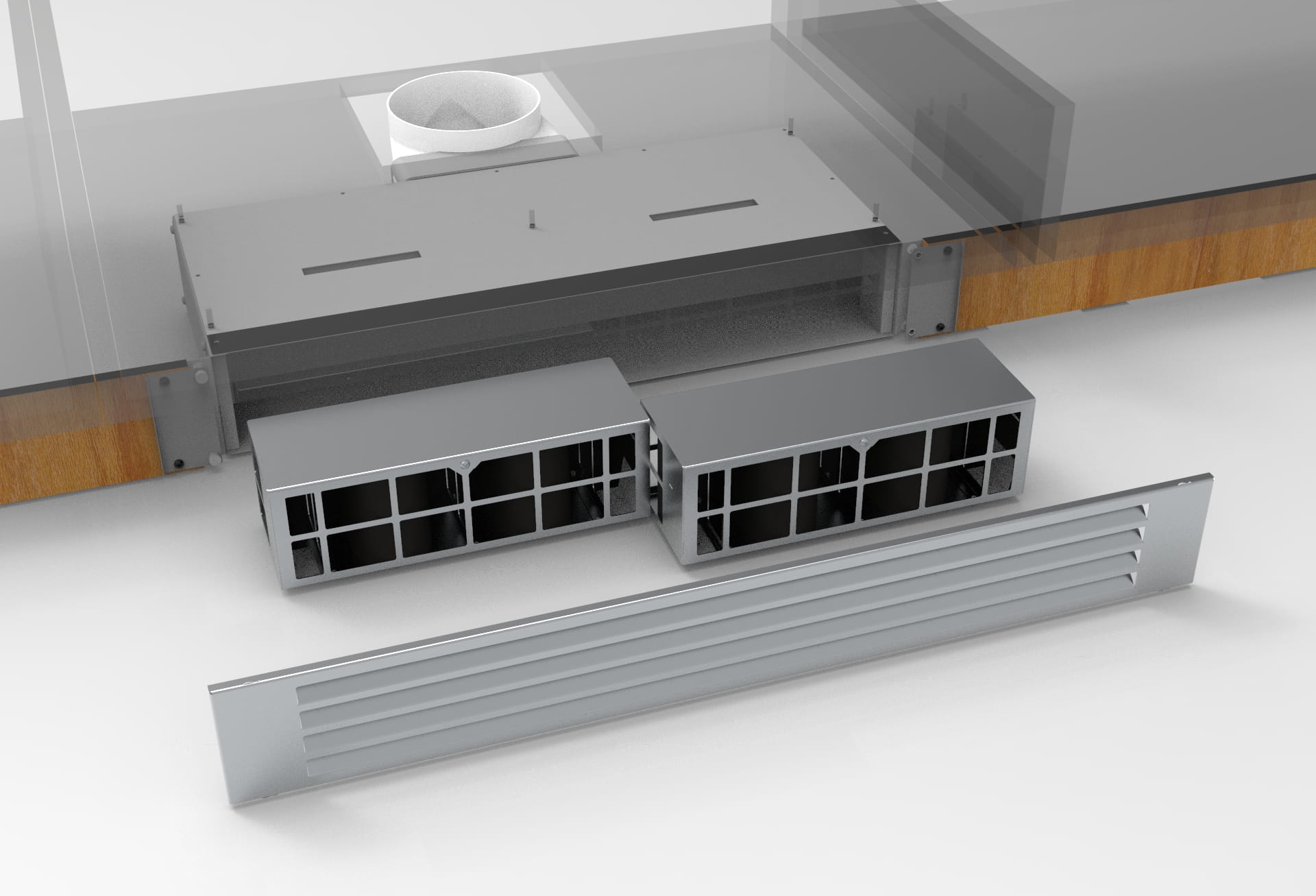 Zestaw do recyrkulacji + zestaw podłączeniowy przeznaczony do płyty ze zintegrowanym okapem CATA AS 750, dzięki któremu okap będzie mógł działać w zamkniętym obiegu jako pochłaniacz.