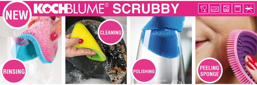 Myjka silikonowa Scrubby to znakomita alternatywa dla tradycyjnego kuchennego zmywaka. Jej silikonowe włókna doskonale zbierają brud i dzięki elastyczności docierają nawet w trudno dostępne miejsca. Struktura materiału zapobiega gromadzeniu się wilgoci, a w konsekwencji - rozwojowi bakterii.