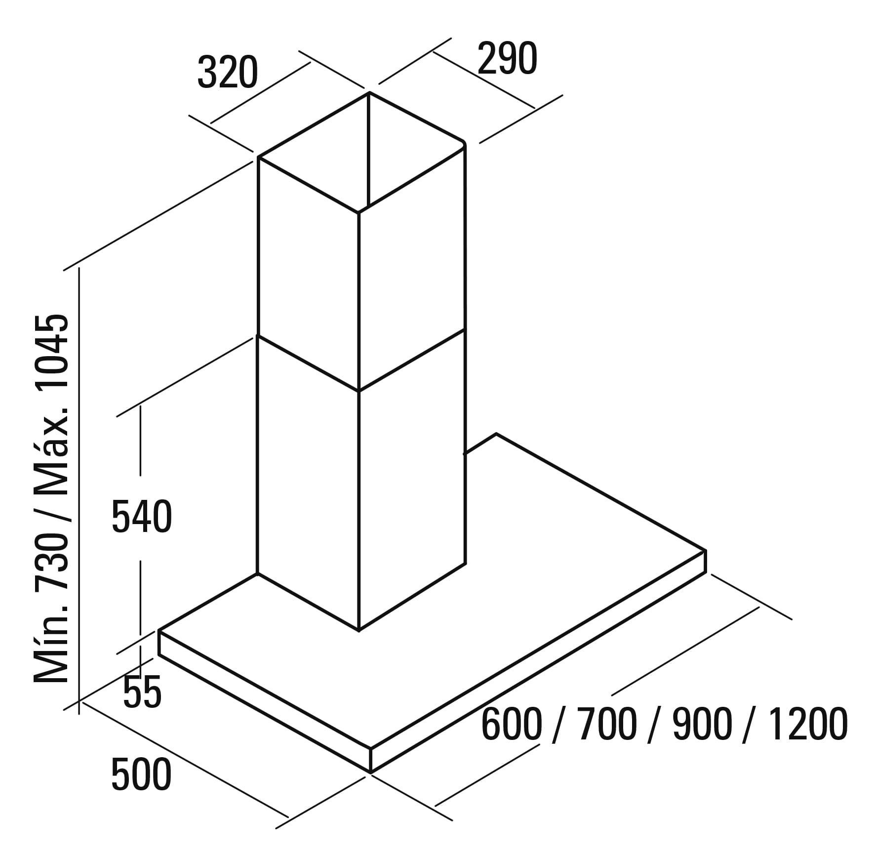 Okap kominowy CATA SYGMA 900 Czarny - rysunek techniczny
