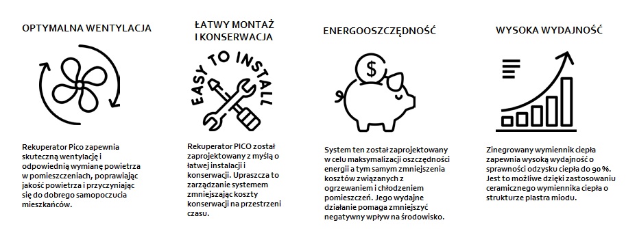 Rekuperator ścienny PICO BASIC został zaprojektowany z myślą o łatwej instalacji i konserwacji.