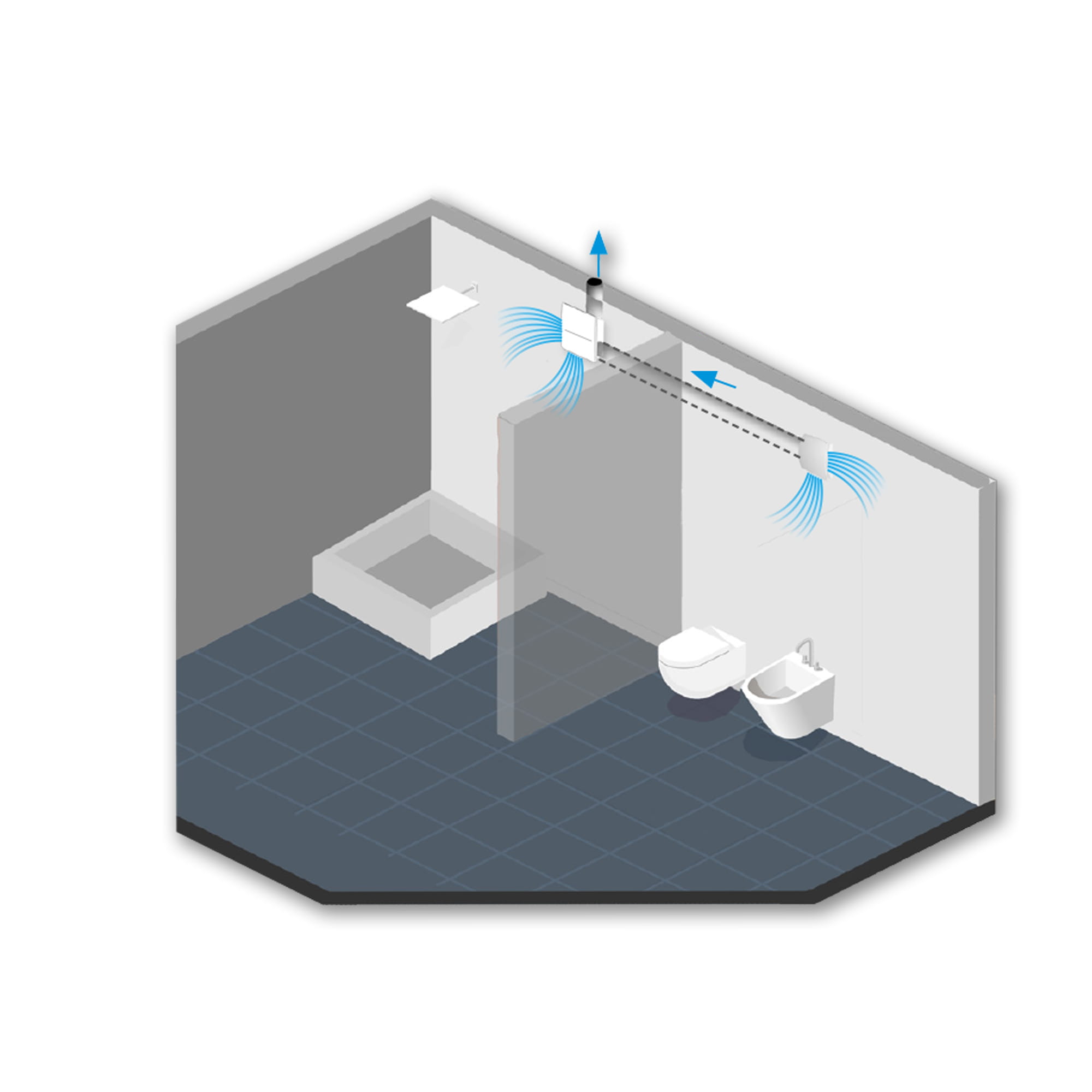 Idealny wentylator promieniowy, przeznaczony do systemów jednorurowych oraz wszędzie tam gdzie występuje wysoki poziom wilgotności, przeznaczony do montażu natynkowego na ścianie lub suficie. Stałociśnieniowy silnik zapewnia stały poziom ciśnienia w systemie niezależnie od wahań oporu powietrza.