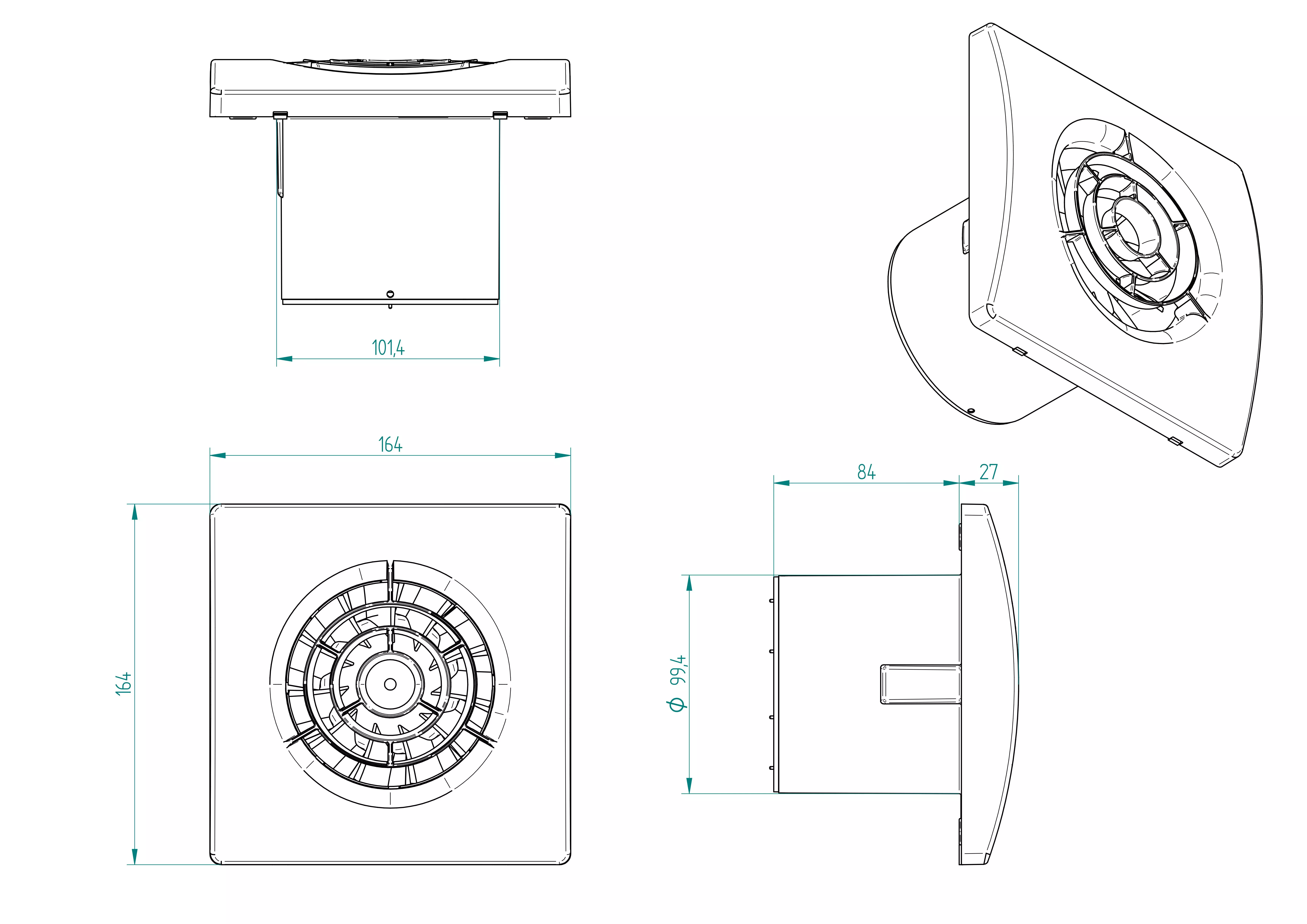 Wentylator łazienkowy Quasar T Aerauliqa - rysunek techniczny