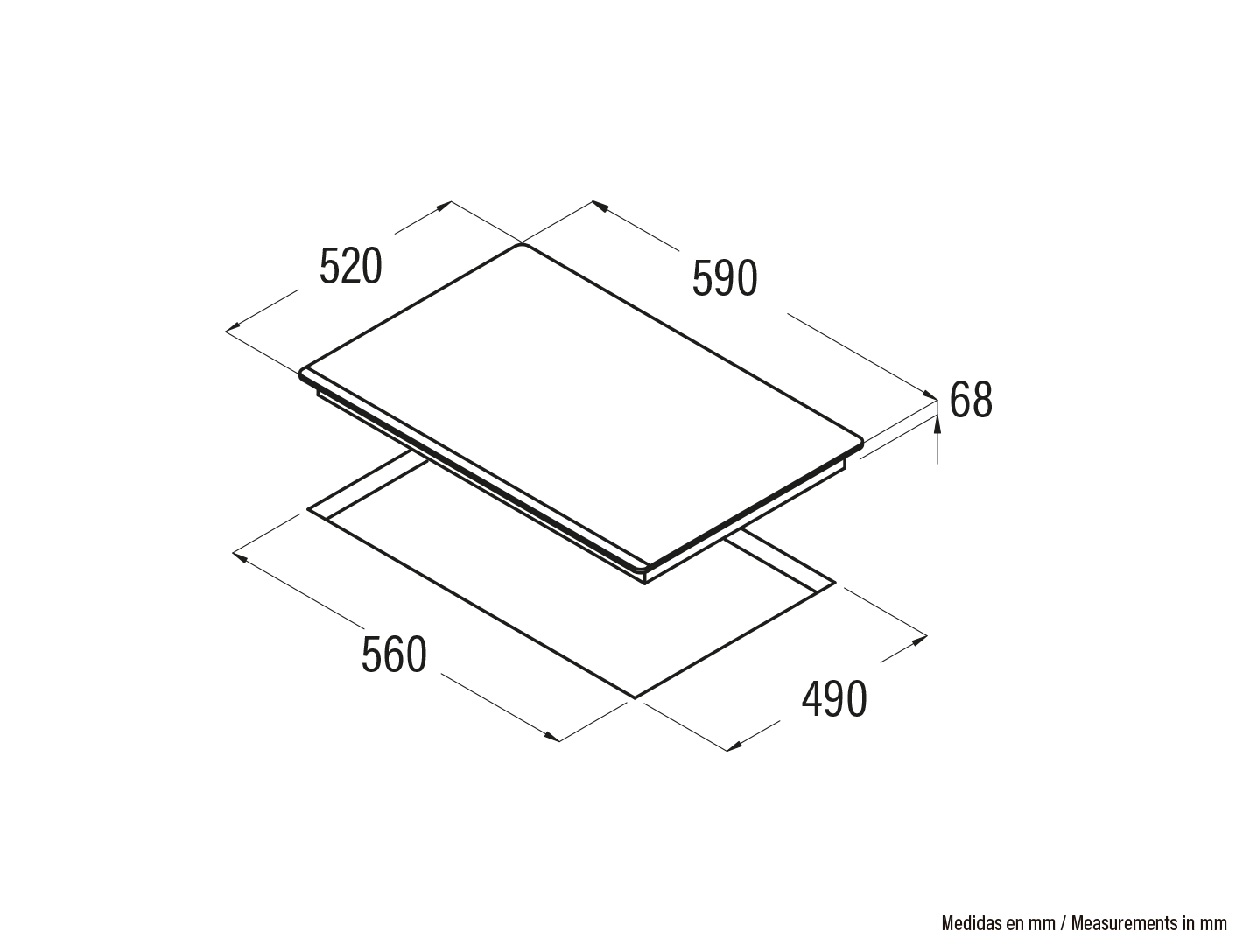 • Płyta przeznaczona do zabudowy w blacie kuchennym posiadający uniwersalne wymiary montażowe dzięki czemu zamontowanie jej będzie proste, szybkie oraz nie wymagające specjalistycznej wiedzy. Otwór należy przygotować zgodnie z wymiarami podanymi w schemacie